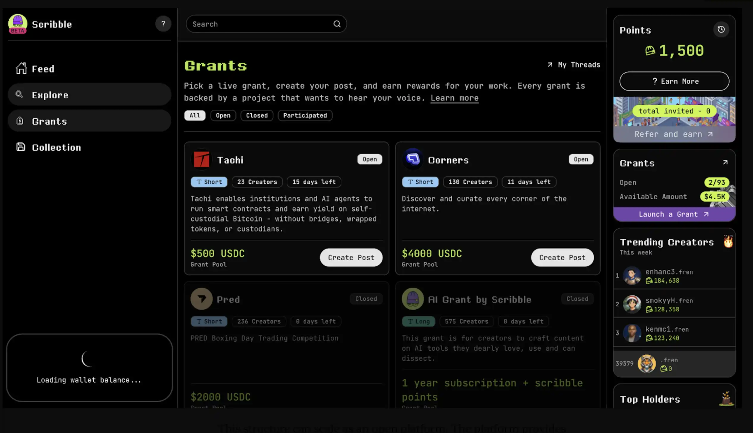 Scribble 是一个典型案例。项目方以「悬赏任务」的形式发布 grant,KOL 则创作内容并提交审核,通过后才能领取奖励。这种机制并非实时追踪与即时结算,而是更偏向「提交—审核」的流程模型。