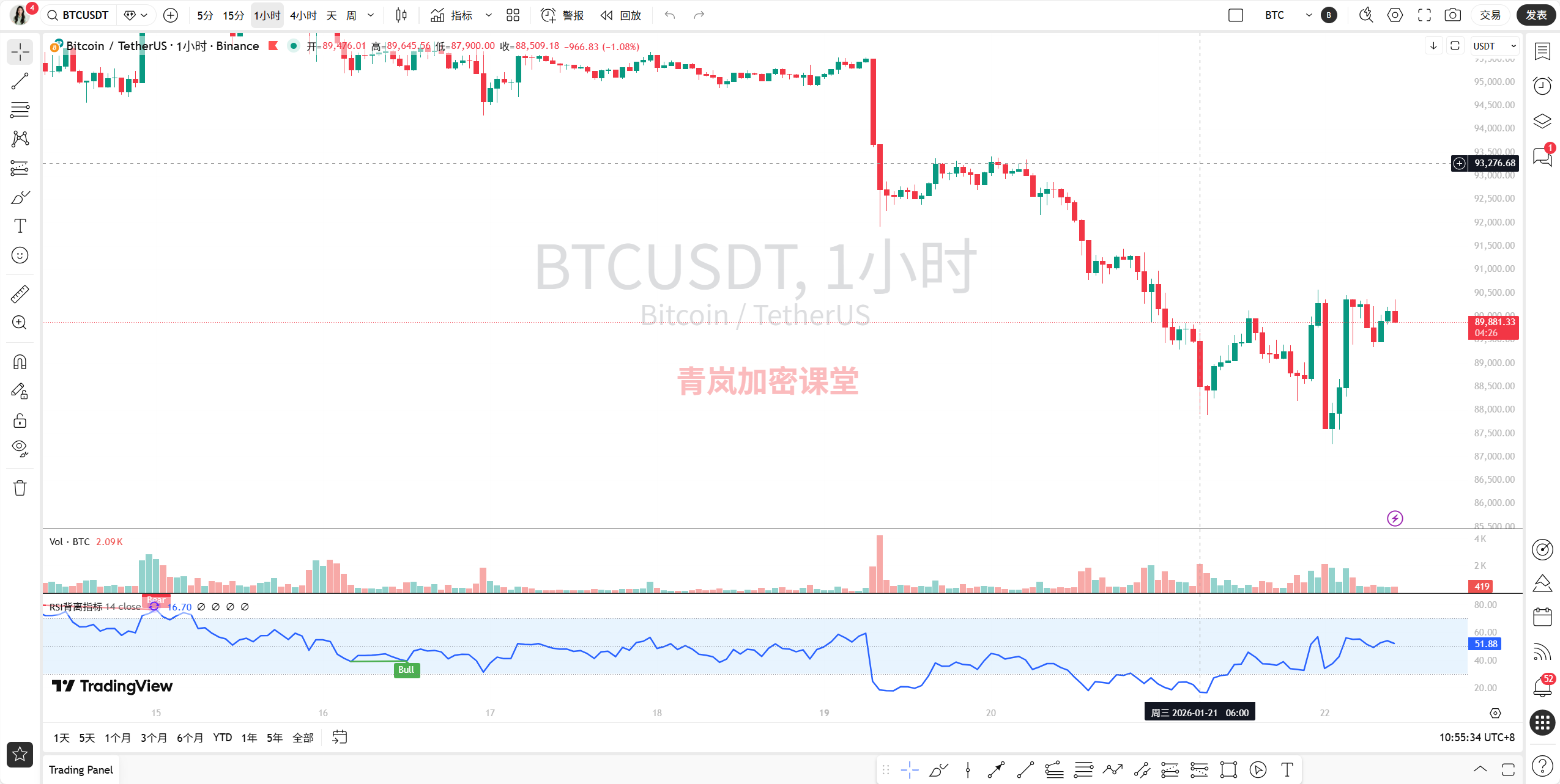 青岚加密课堂 | 1月20日BTC行情分析 | 多空交织,顺势而观