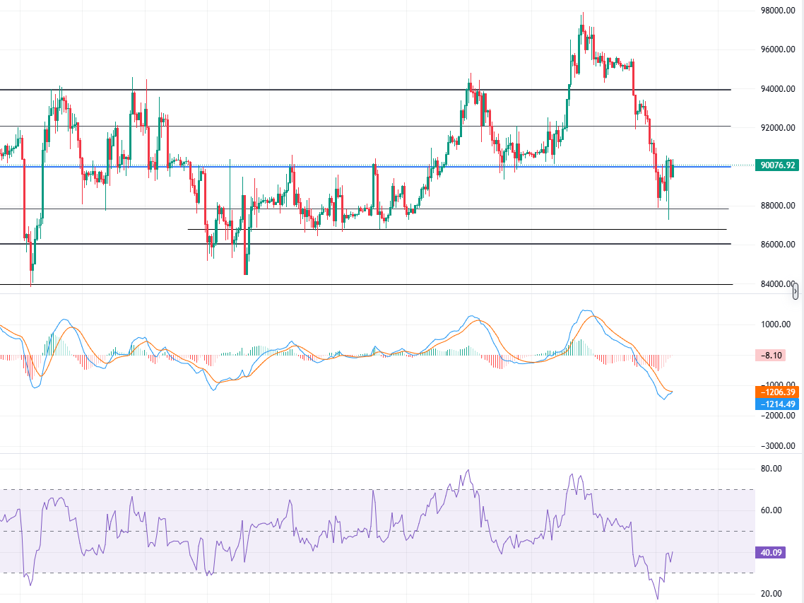 88000探底反弹!比特币90000争夺战打响,以太坊3000还能站稳吗?