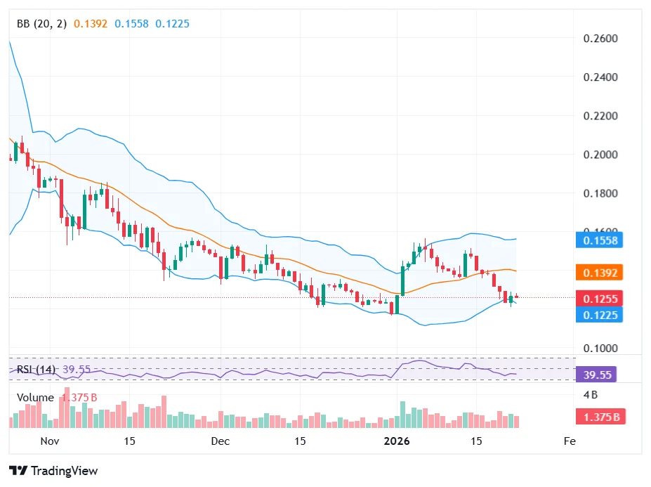 布林带显示狗狗币可能瞄准0.16美元