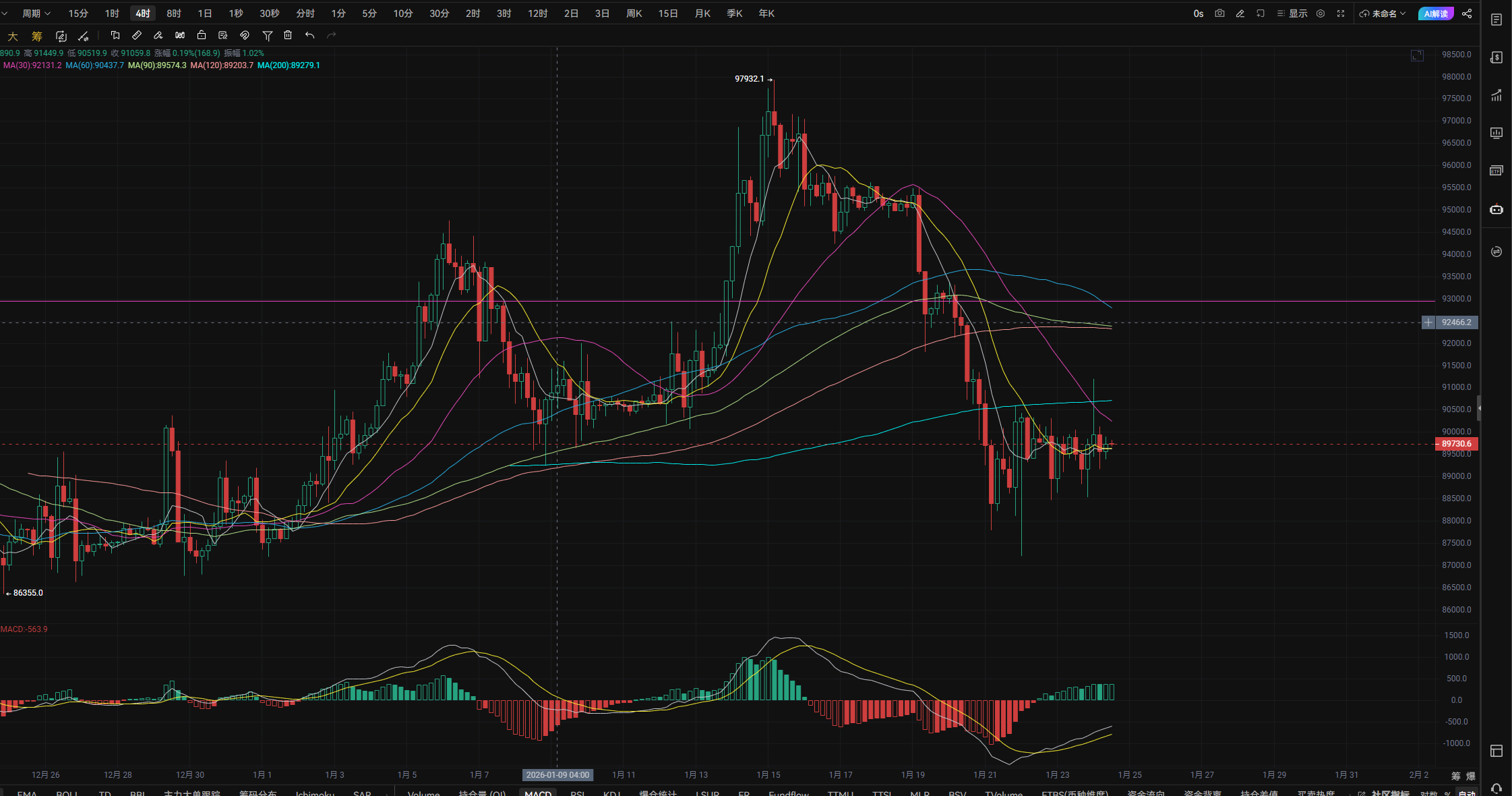 目前的筹码结构仍然非常稳定,还是能看到83,000美元到93,000美元有大量的$BTC聚集,这也说明投资者对于这个价格区间还是认可的,接下来就还要看美国的货币政策和川普的关税了。整体投资者的情绪有稍微的好转,美股和BTC也只是有小幅度的波动,在川普的格陵兰关税结束后,虽然欧洲还有些不服不忿,但想来都是嘴上的争斗,实际的影响应该是不大了,投资者的情绪也会逐渐的回归平稳。下方回踩88830-88550-88080附近可进行接多,反弹目标可看至93000附近