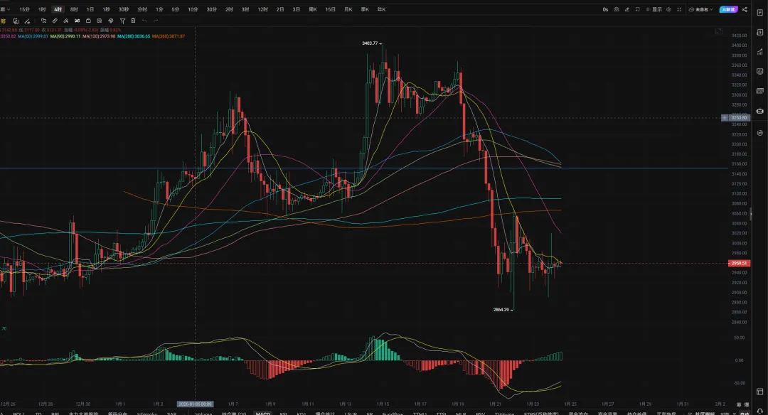 下方回踩2905-2870附近可进行接多,反弹目标可看至3040-3150附近