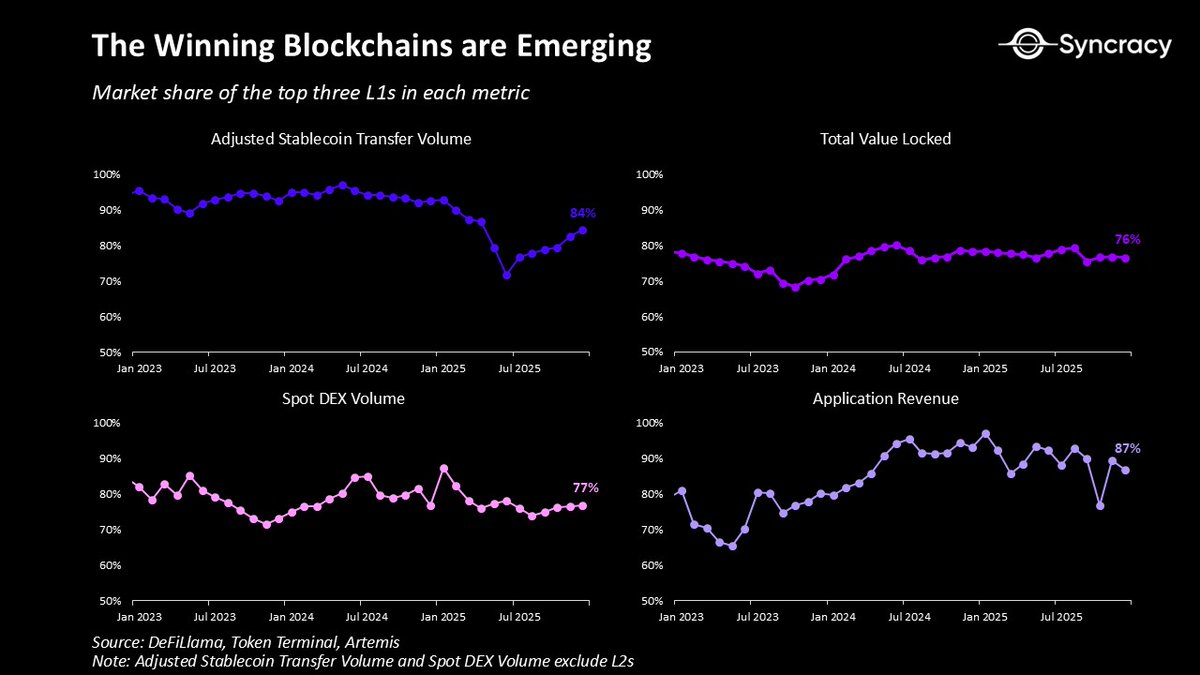 同时,市场对于一个简单且经受过时间考验的原则达成了日益增长的共识:除了比特币(BTC)和以太坊(ETH)这类罕见的价值存储资产外,99.9% 的资产都需要产生现金流(Cash flows)。随着更多基本面投资者进入该资产类别,这些框架只会被进一步强化,理性程度随之增加。