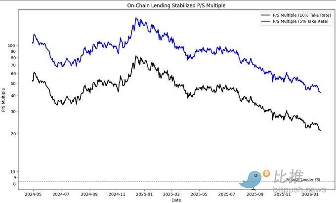 我认为有一个站得住脚的逻辑:即便代币价格继续下跌,链上的借贷需求仍能持续增长。虽然我不对加密市场的贝塔估值表态,但如果上述逻辑成立,协议估值在 2026 年的某个时点将变得非常合理。