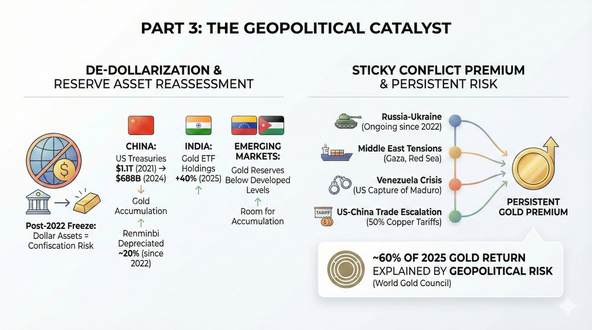 每一次事件都强化了黄金的避险地位。其累积效应是:即使在局势相对平静的时期,一个持续存在的溢价也并未消散。