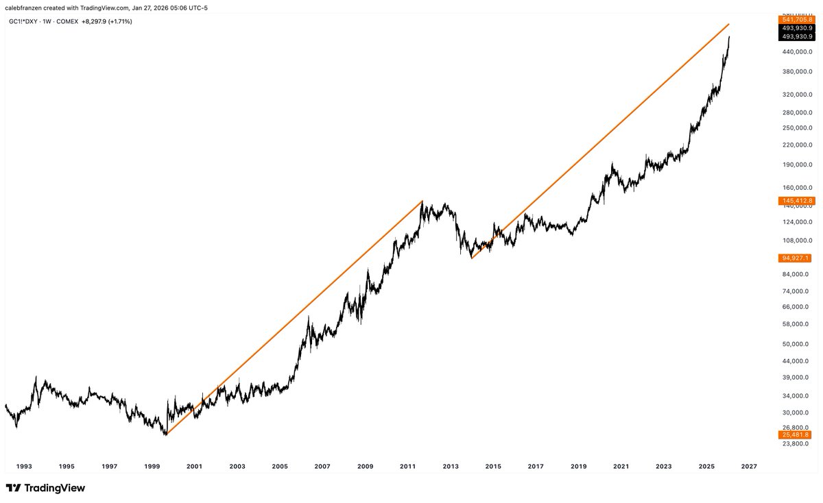 我可以在这张黄金 * DXY 的图表中证明这一点,它以一篮子全球货币来定价黄金。