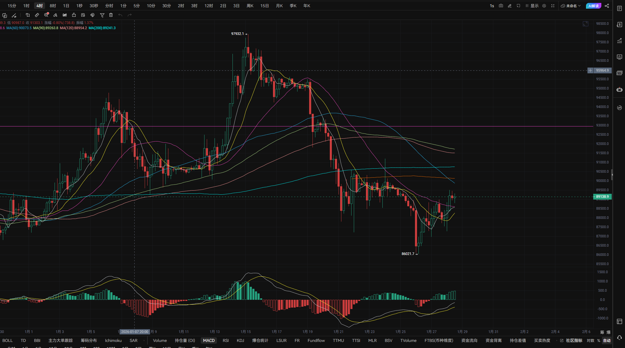 下方回踩87730-86500附近可进行接多,反弹目标可看至89200-90200附近。反弹至89400-89800可反手空,90400-90800附近可进行补仓,目标可看至87700-86500附近