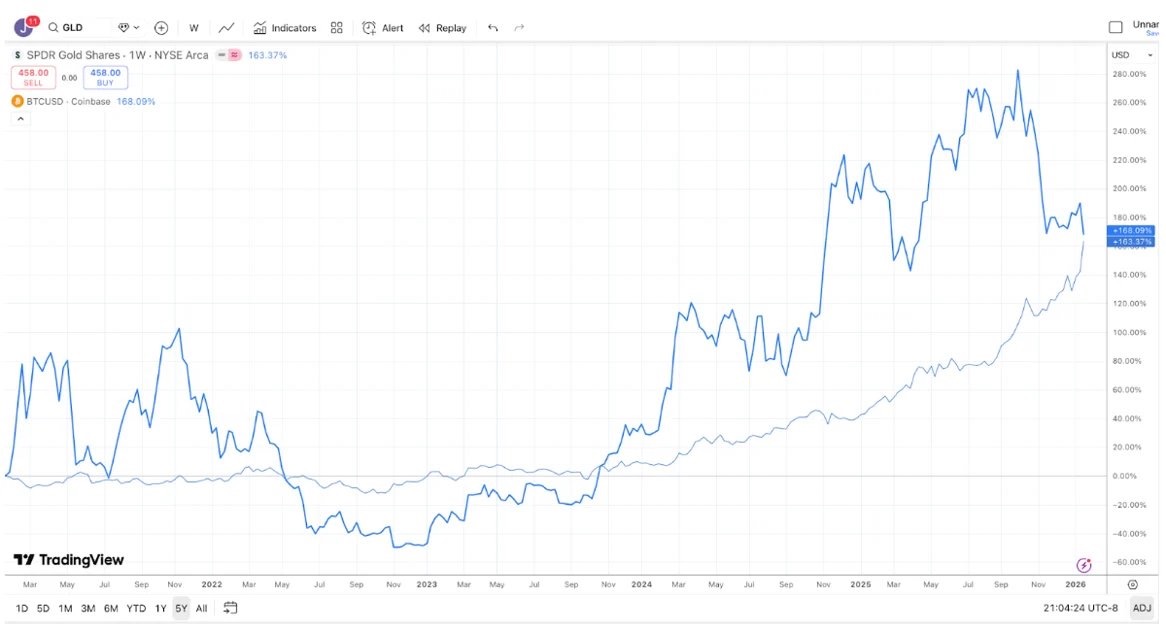 黄金投资者则倾向于认为黄金才是最佳投资,并且最近一直在对比特币的颓势「冷嘲热讽」,因为在过去的一年里,黄金的表现明显优于比特币(白银和铜的情况也类似)。