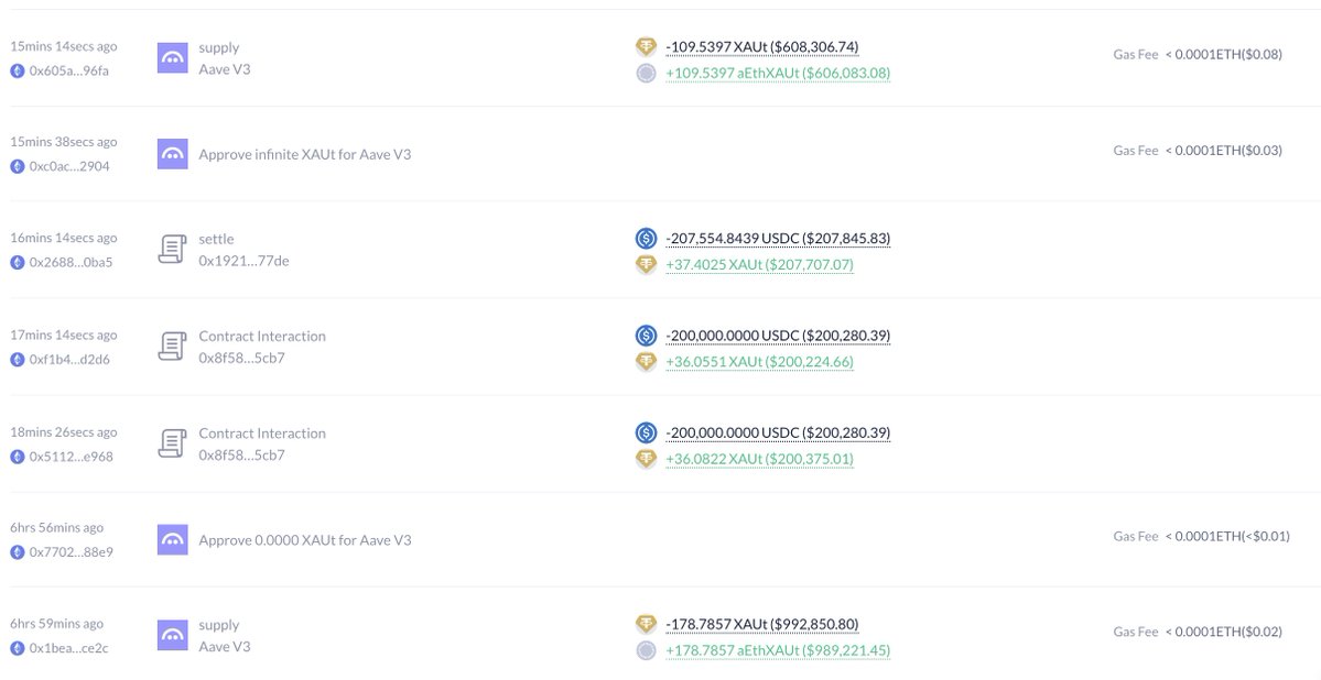 他花费了560万美元$USDC以每个$5,261的价格购买了1,066个$XAUT,然后将350万美元$USDC存入Hyperliquid,以开设53,528个$SILVER($6.48M)和158.36个$GOLD($876K)的多头,同时做空4,229个$NVDA($809K)。