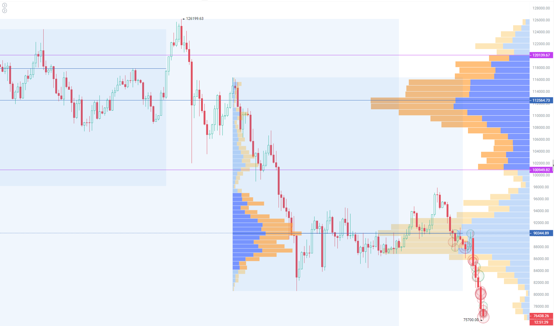 76,037美元:被视为“机构信仰标杆”的MicroStrategy平均持仓成本线。跌破此位置意味着该公司的比特币持仓首次进入账面浮亏状态,动摇了市场对“机构坚定持有”的预期。