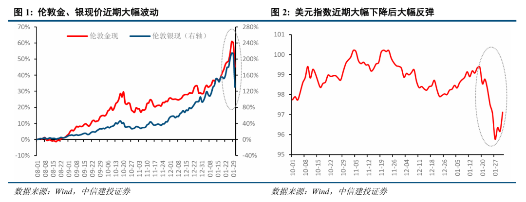 因此,我们看到1月下旬以来美元指数加速走弱,迅速从16日99.37跌至27日的95.77,为2022年3月以来最低水平。全球资金急切的进行“弱美元交易”,做多贵金属和其它实物资产,将这一未来数十年即将发生的长期趋势在一周内演绎到极致,随后立即迎来反噬。