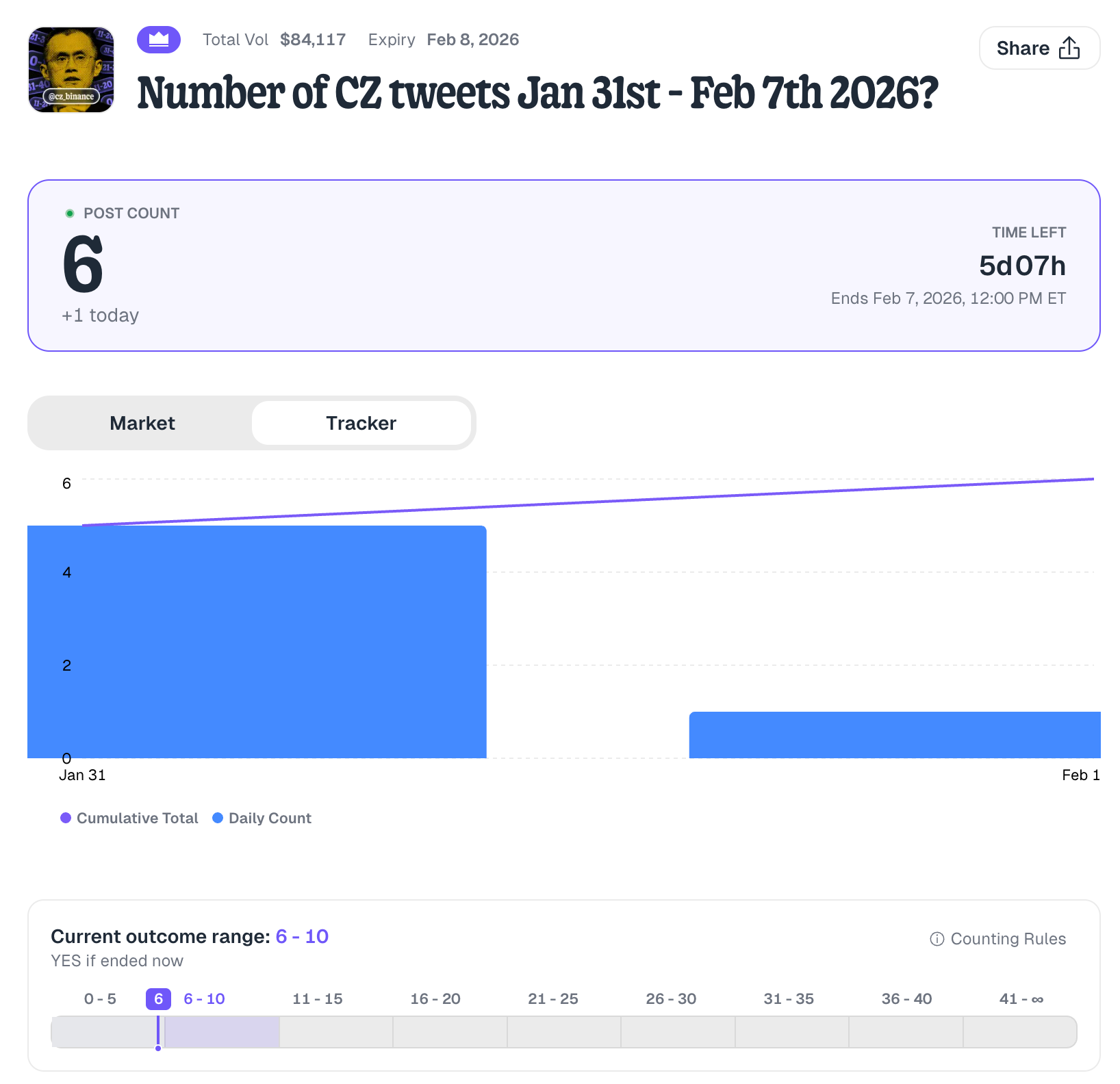 predict.fun 上线了“CZ 发布推文数量”事件