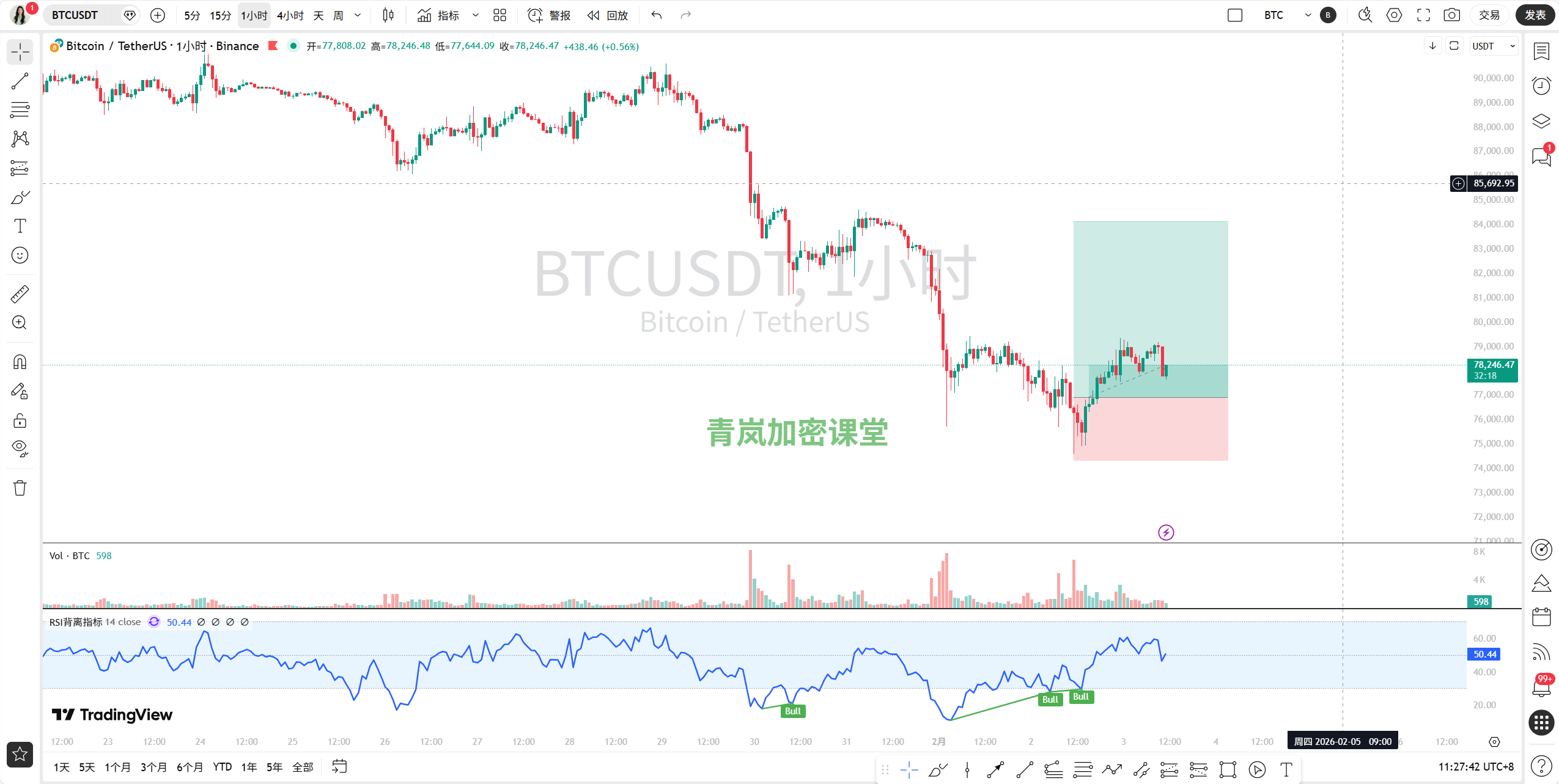 空仓/轻仓的朋友:耐心等着,别急着伸手抄底。现在属于“下跌趋势中的反弹遇阻”,做多风险比机会大。可以重点观察价格到了 76,000-76,500 区域,能不能出现明显的止跌企稳信号(比如日线级别长下影线、指标底背离等),再考虑分批、小量布局。