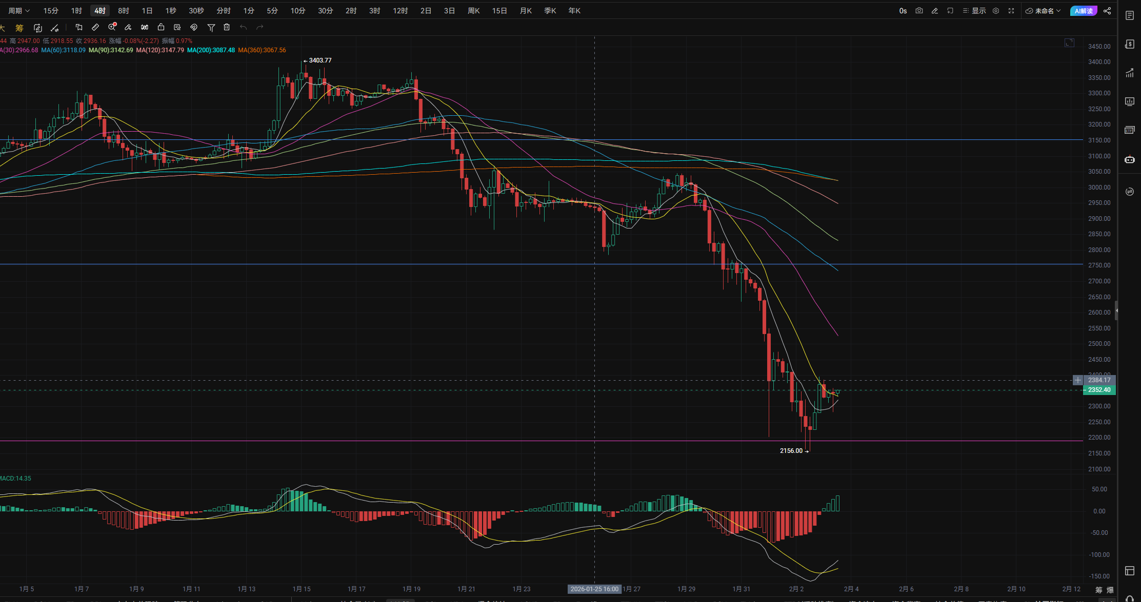 2.3币安大饼日内买入100M现货,现货黄金白银早盘开盘下探后进入震荡