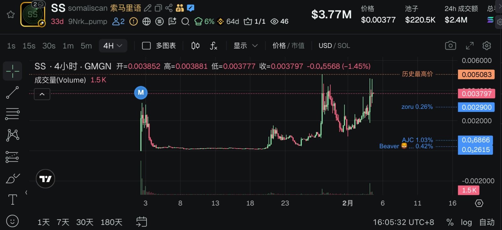 有意思的是,这个政见博主在今年的 1 月 2 号为网站发行了 meme 代币 SS(9NrkmoqwF1rBjsfKZvn7ngCy6zqvb8A6A5RfTvR2pump)。这个代币在刚发行时表现平平无奇,在 Beaver 文章获得数千万浏览量之后,在 1 月 28 日创下了阶段性的高点,又在今日获奖者公布之时再度冲高。对比 SS 的惨淡表现和 100 万美元奖金,这可能是我们难得能找到的「写文章比炒币赚钱」的特例。