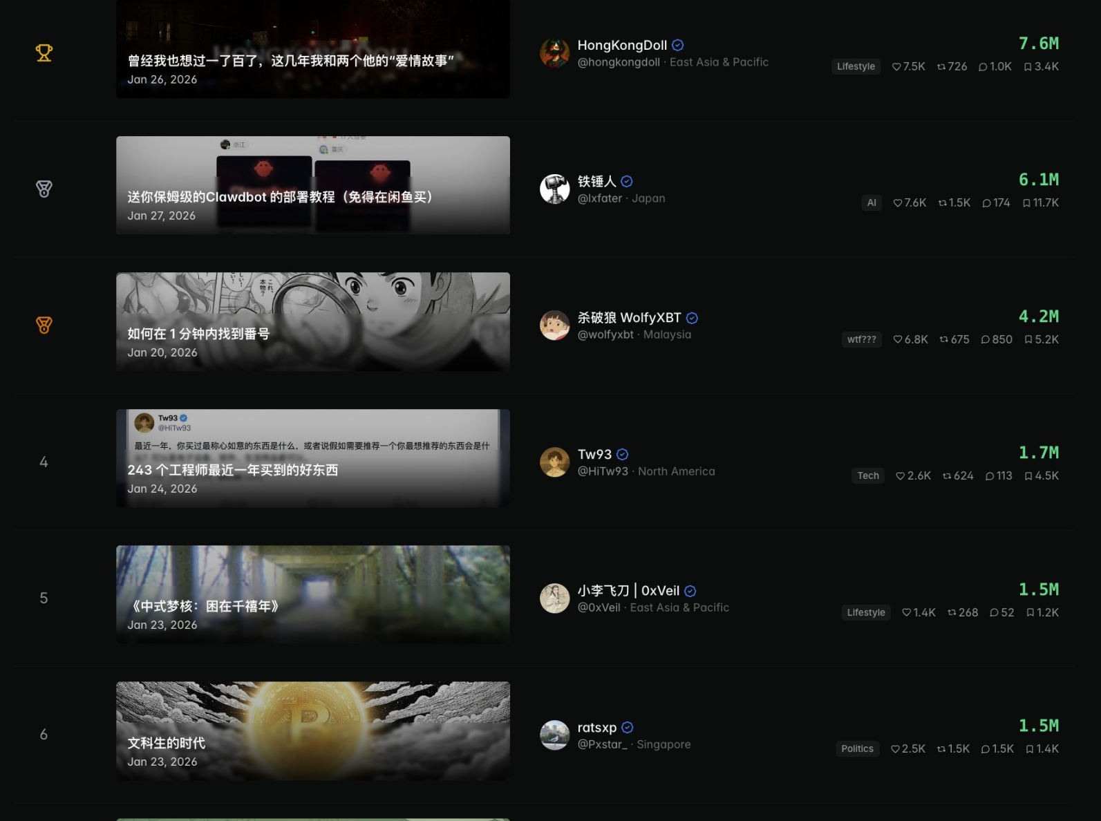 X 上的高阅读量中文文章,也逃不开这些话题。