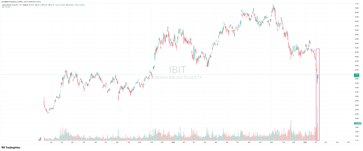 Parker 的这篇文章很多小伙伴转发给我,问是不是 $IBIT 的清算导致了这次 $BTC 价格的连环踩踏,我稍微解释一下,Parker 所说的清算实际上是 IBIT 这个现货 ETF 的清算,而不是 Bitcoin 的清算,而且 IBIT 虽然是 BTC 的现货 ETF ,但并不等于是 BTC ,而且 IBIT 的清算也并未引发 BTC 的清算。