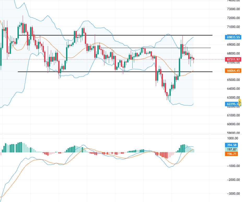 短期支撑:66000 美元(4 小时中轨),跌破后将测试64500 美元(日图下轨)强支撑