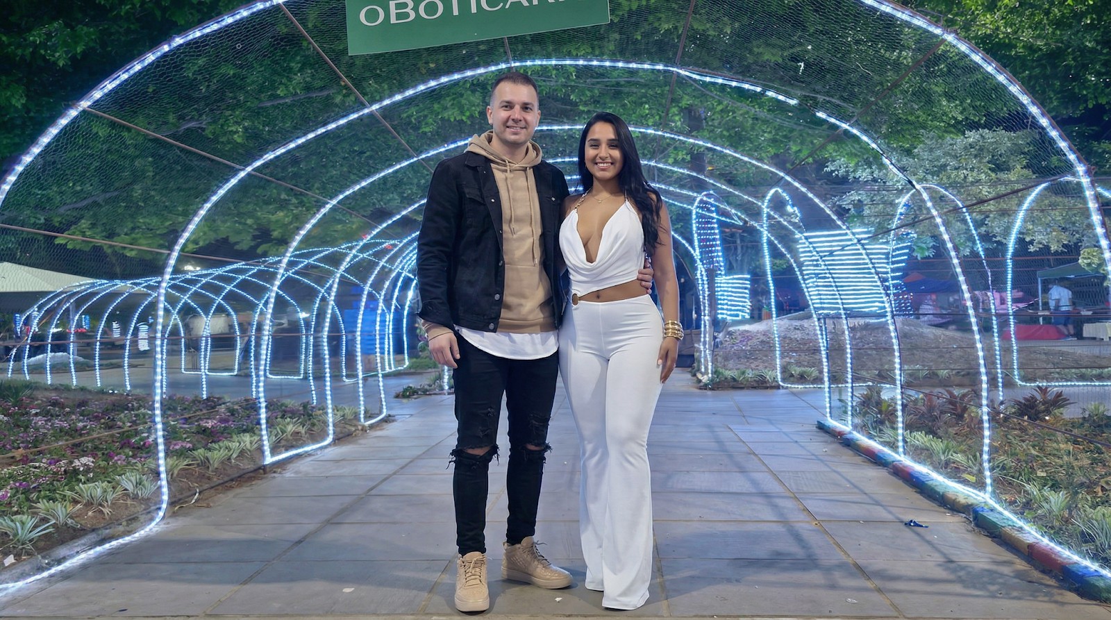 场景几何保持不变——LED 隧道环境、瓷砖人行道透视和背景标志的放置都保持一致。