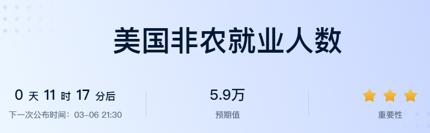 市场普遍预期,2月新增非农就业人数将大幅放缓至6万左右(也有预期为5.9万),远低于1月的13万人,失业率则预计维持在4.3% 。周三公布的“小非农”ADP数据显示,美国企业2月新增就业6.3万人,虽然略超预期,但仍显示出招聘活动集中在医疗、教育等少数行业,增长并不广泛 。