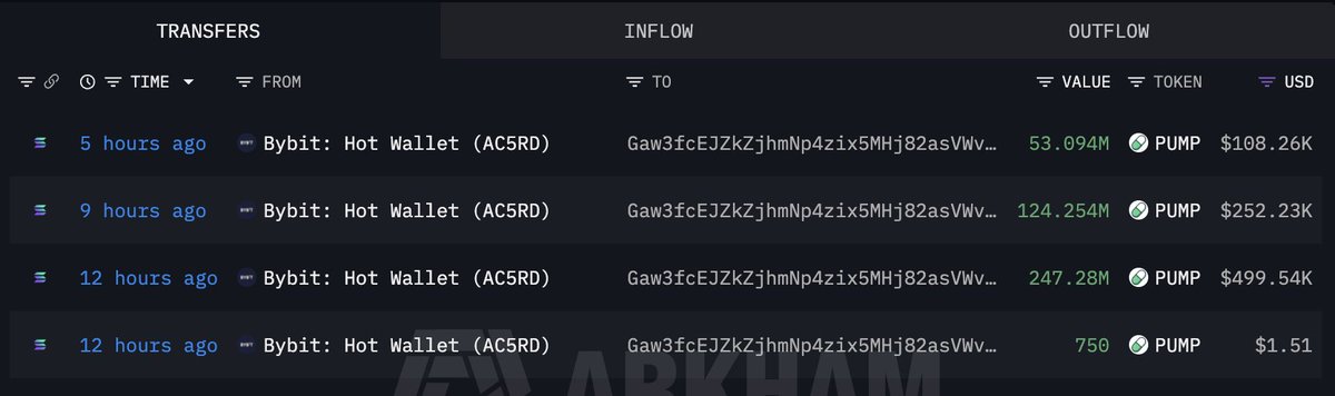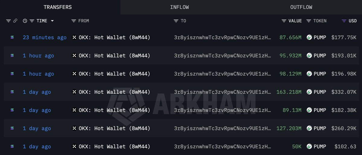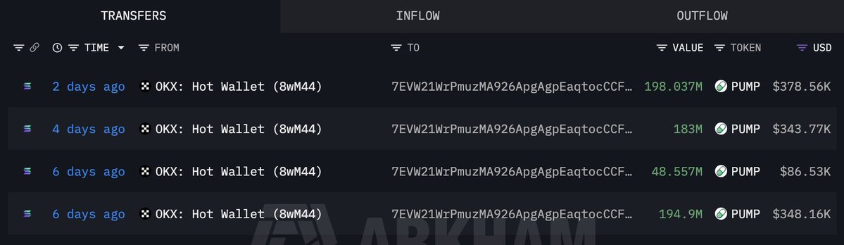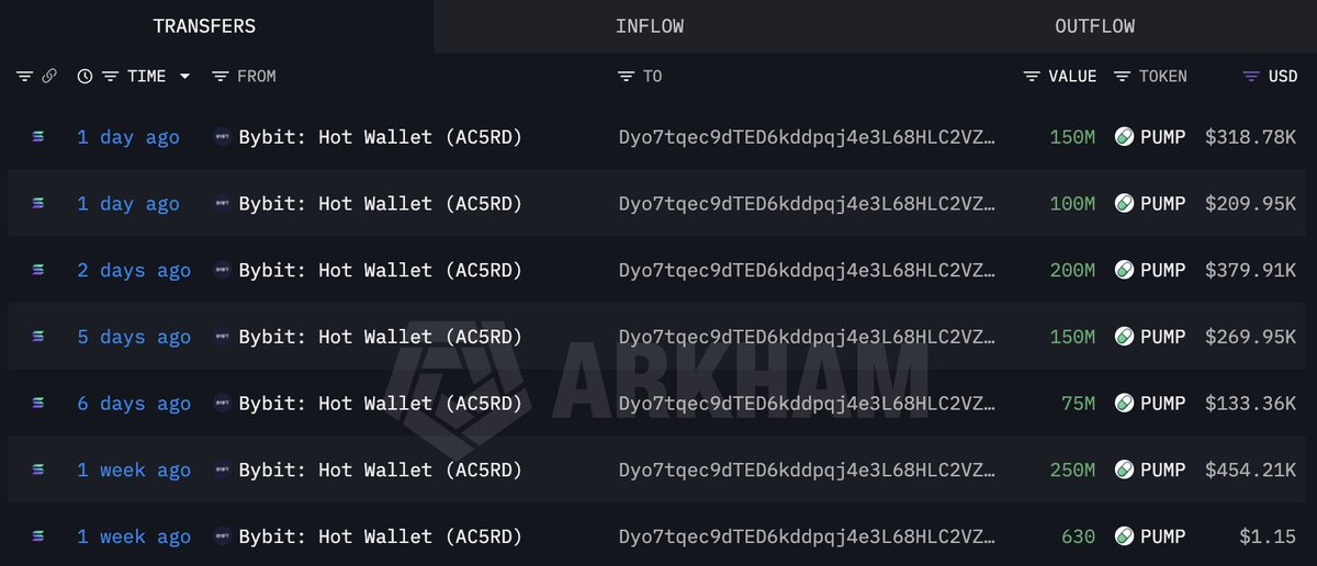 在过去的10天内,11个新创建的钱包从#OKX、#Bybit和#Kraken提取了72.1亿$PUMP(1456万美元)。