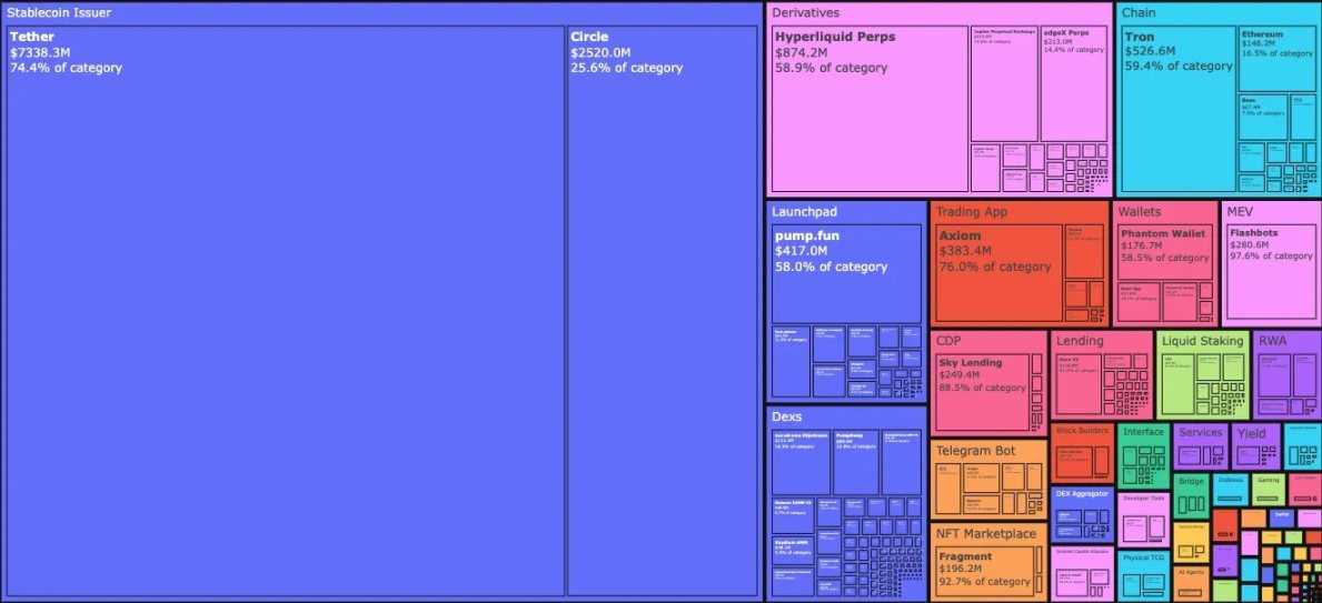一个诡异的悖论出现了:底层协议(DeFi 组件、公链)估值下跌,但构建在它们之上的应用,却在更短时间里赚了更多钱。