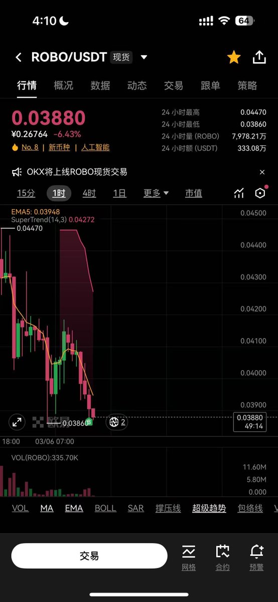 总结来说,以前投资机器人,大家都在赌哪家硬件能赢。但硬件内卷速度太快了,最后大概率是毛利见底。OpenMind 走的是 Android 路径,不管你是什么类型的机器人,只要你想联网、想避障、想自主交易,就可以选择跑OM1系统。所以到最后我们投的不再是一个“卖硬件的”,而是一个“收税的”,只要Robot Economy转起来, $ROBO 就是这个生态里的通用结算货币。而且现在FDV市值跌破了4亿美金,低于之前的预售价格,买一些小仓位潜伏,不 Fomo,等 OM1 工业案例爆发。投这个,本质是赌物理世界Web3 化,期待一波。DYOR,仅个人笔记。🧐
