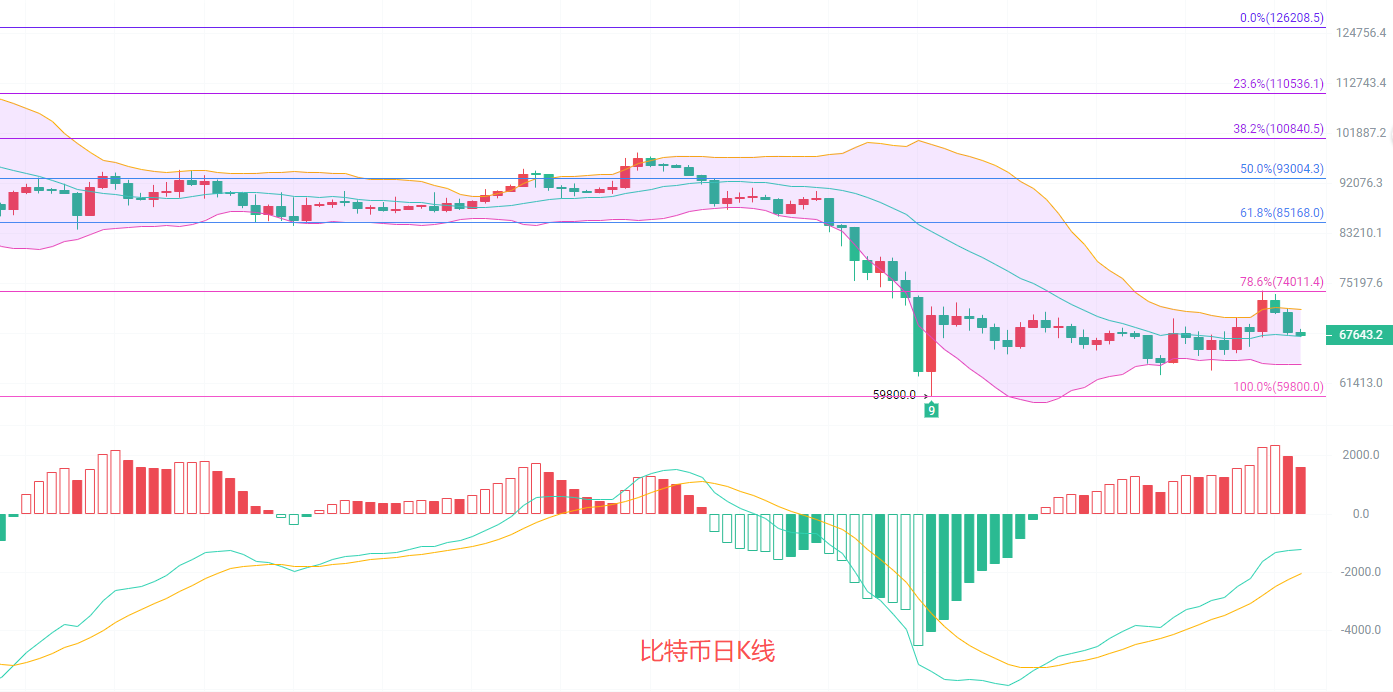下方68000到67500北上,防守67000,止损400点,目标看71000到72000,破位看73000到74000