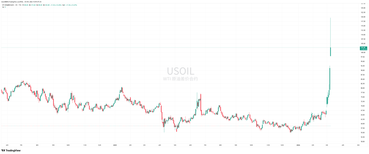 今天油价最高冲到了 120 美元,可见市场对伊朗和美国战争的预期,短时间估计是结束不了了,北京时间下午14点左右的时候传出七国集团考虑协调释放战略石油储备,来抑制油价的上涨,目前美油价格回调到 100 美元左右。
