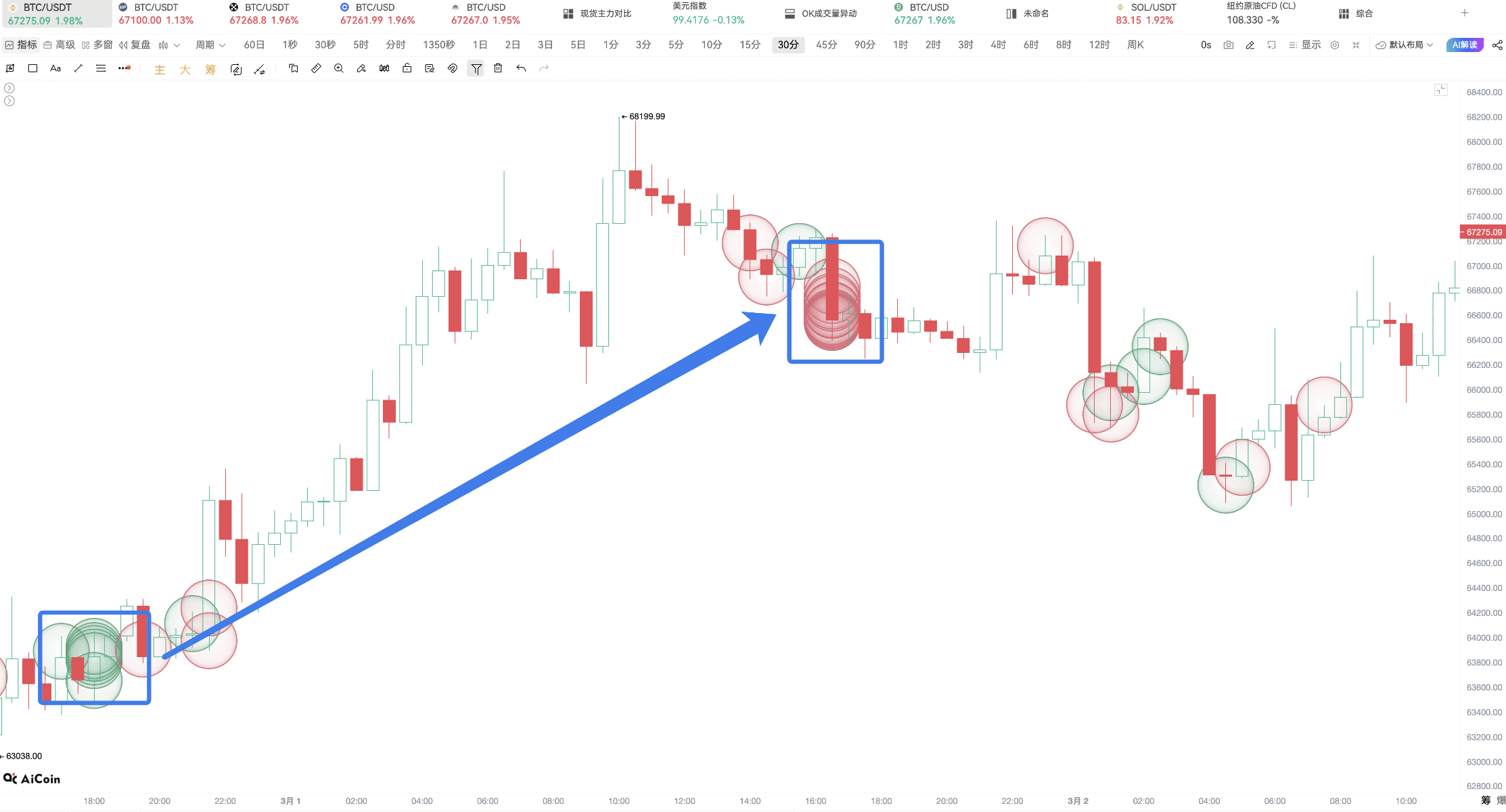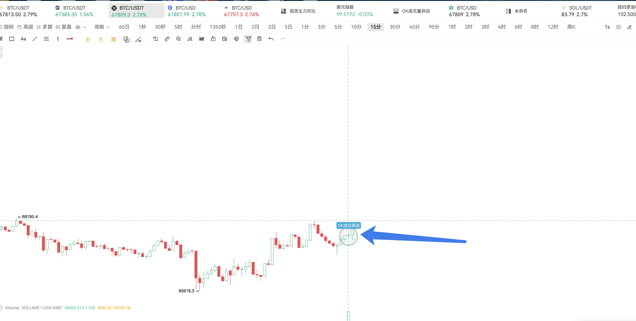 记住这个阈值:成交量≥500 BTC,才算有效异动,刚刚就又出信号了,币安成交量完全没跟上。