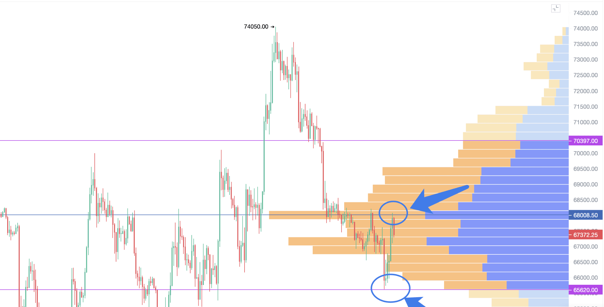 Coinbase:65500-64500 有长期挂单,短期强支撑