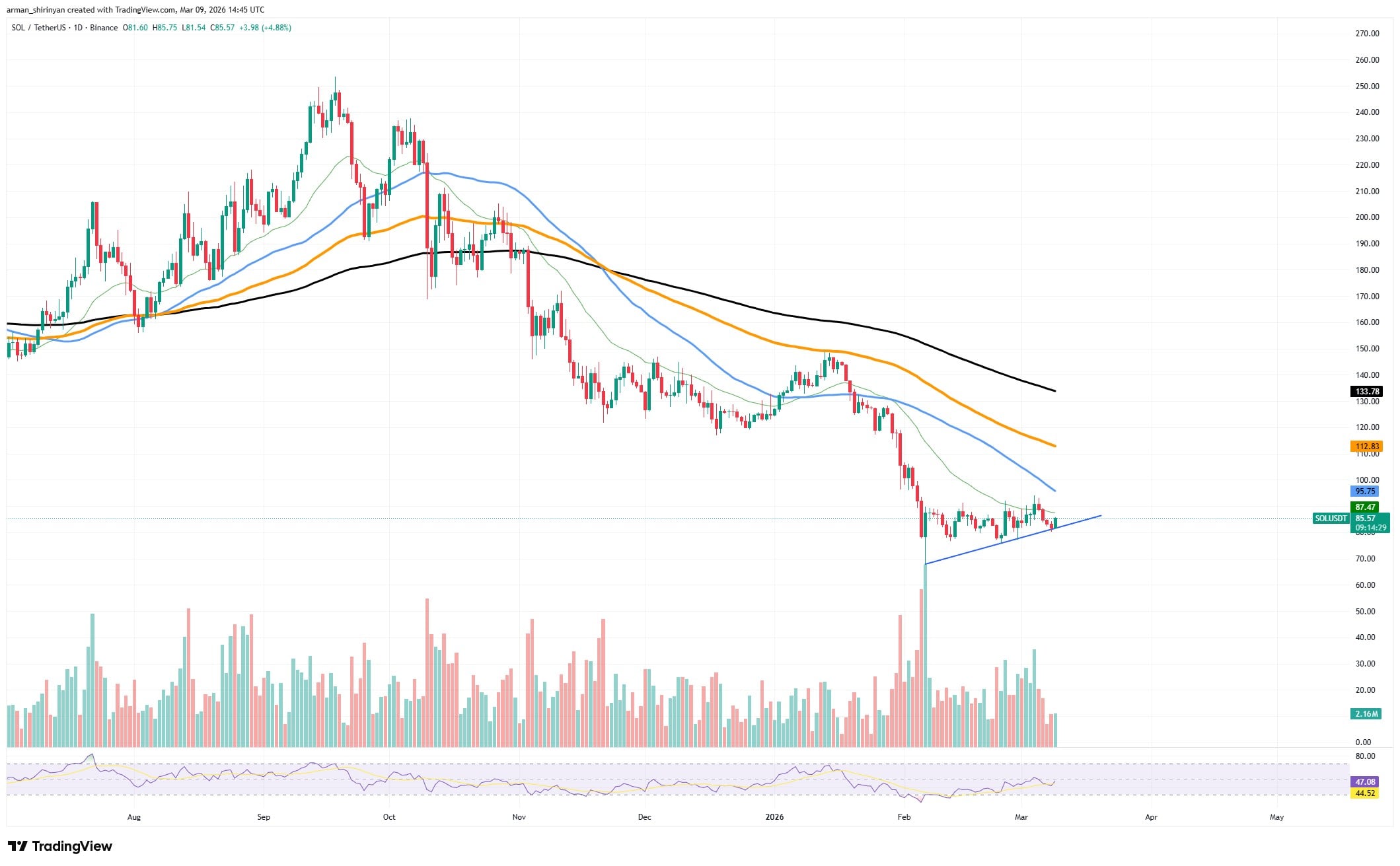 由TradingView提供的SOL/USDT图表