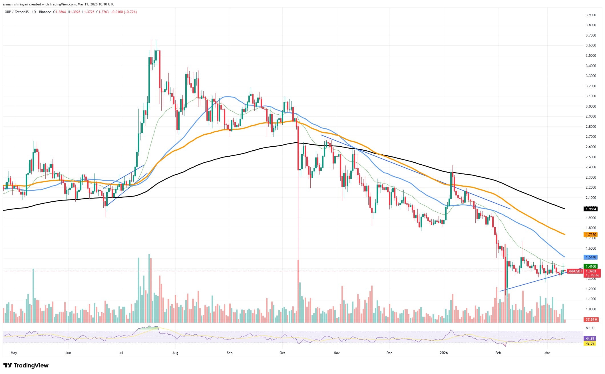 TradingView 的 XRP/USDT 图表