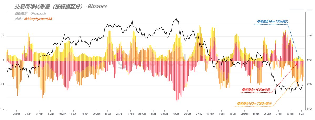 图2:Binance交易所净转账量(按规模区分)