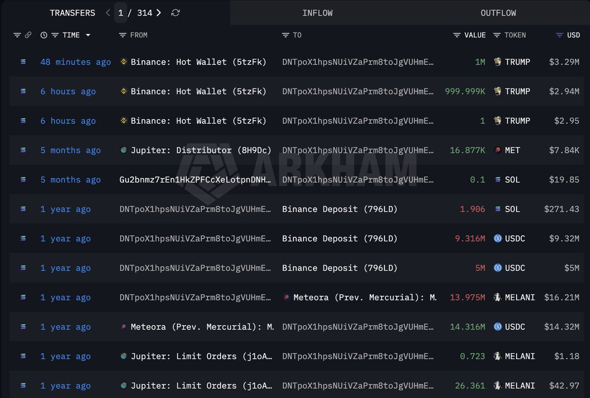 鲸鱼 DNTpoX,曾在 $MELANIA 上损失 1568 万美元,在过去 6 小时内从 #Binance 提取了 200 万 $TRUMP(692 万美元)。