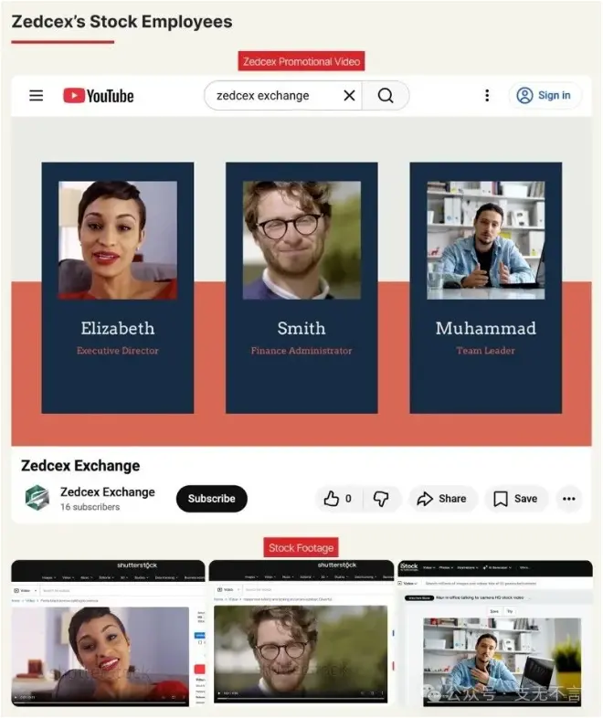两家交易所的官方视频里都有一个叫"Elizabeth Newman"的"执行董事"。OCCRP 发现,这个人根本不存在。视频里的女性形象来自图库网站上的一段商业素材,标签是"Pretty Black woman talking to camera"。