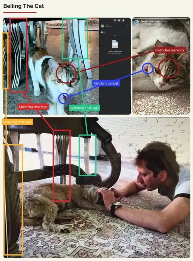 2024 年 5 月,Zedxion 的官方 Telegram 频道发了一张灰白相间的猫的照片,脖子上挂着一个显眼的紫色铃铛。几个月后,一只毛色、花纹、紫色铃铛完全一致的猫,出现在了赞贾尼女友索尔玛兹·巴尼(Solmaz Bani)的 Facebook 页面上。
