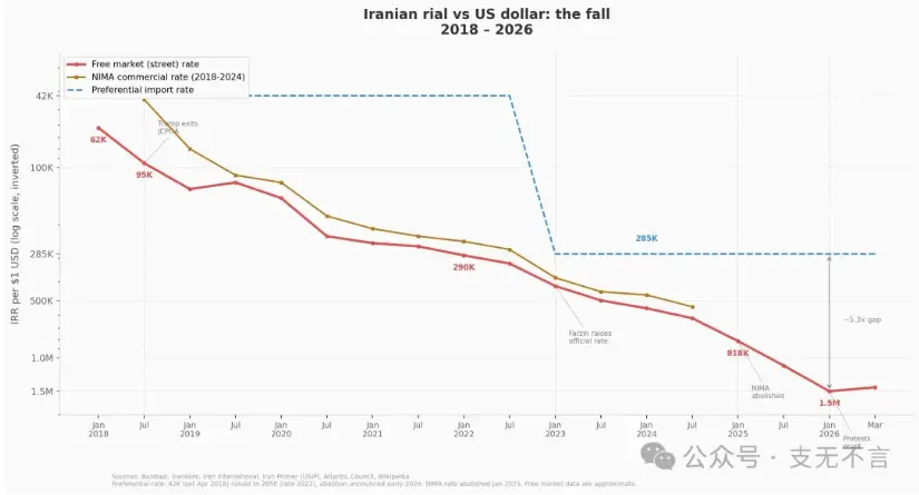 挖矿的故事在不同国家有不同版本,货币贬值的故事也是。Nobitex 那几年为什么增长极快?因为恰恰是里亚尔崩得最狠的时候,2018 年黑市上 9.2 万兑 1 美元,如今已经跌破 150 万。