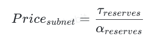引入的“动态 TAO”机制通过自动化做市商(AMM)为每个子网创建了独立的价值储备池,其价格由 TAO 与 Alpha 代币的比例决定:
