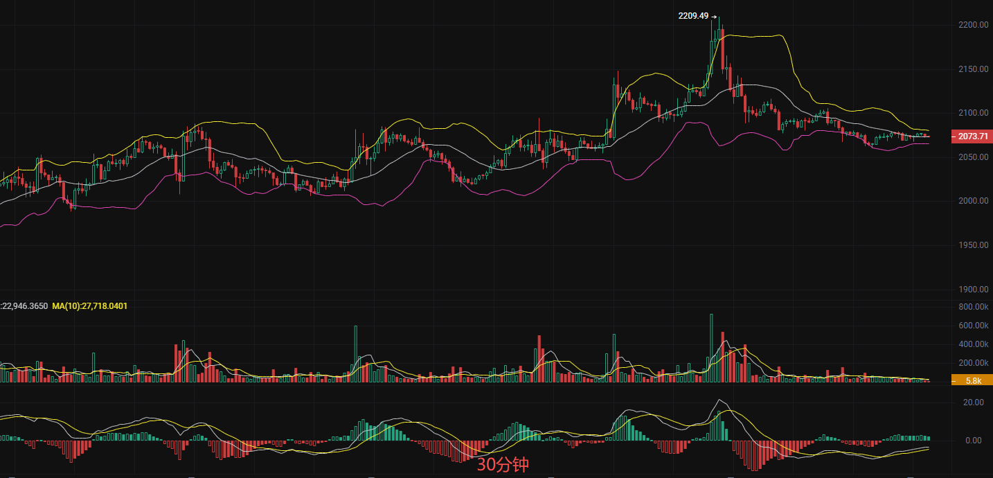 中线思路,若主力回踩布林带下轨2047不破分批开多,目标看2300瞄准2400,止损放在2000关口
