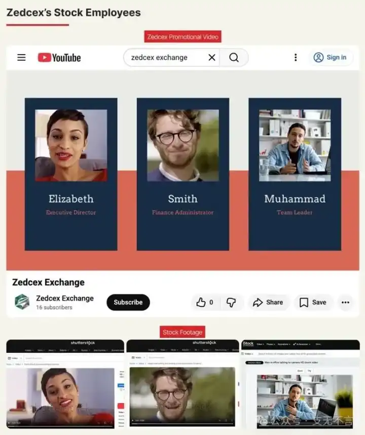 两家交易平台的官方视频里都有一个叫「Elizabeth Newman」的「执行董事」。OCCRP 发现,这个人根本不存在。视频里的女性形象来自图库网站上的一段商业素材,标签是「Pretty Black woman talking to camera」。