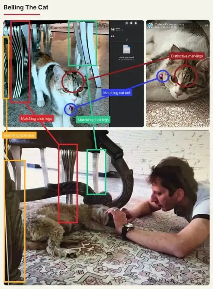2024 年 5 月,Zedxion 的官方 Telegram 频道发了一张灰白相间的猫的照片,脖子上挂着一个显眼的紫色铃铛。几个月后,一只毛色、花纹、紫色铃铛完全一致的猫,出现在了赞贾尼女友索尔玛兹·巴尼(Solmaz Bani)的 Facebook 页面上。