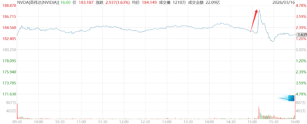 黄仁勋的万亿预期一度推动英伟达股价涨超 4.3%。