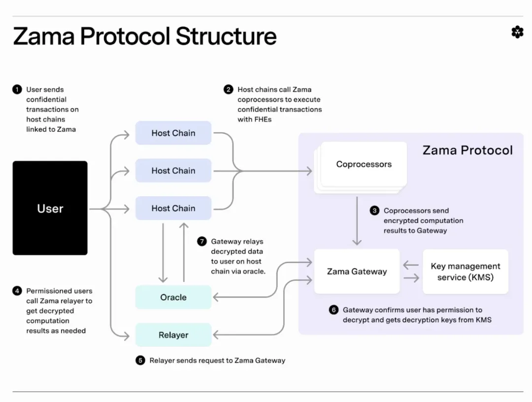 Zama 作为该领域的领军独角兽,其开发的 fhEVM 已成为实现“全流程加密计算”的标准。FHE 允许计算机在不解密数据的情况下进行数学运算,其结果在解密后与明文运算完全一致。