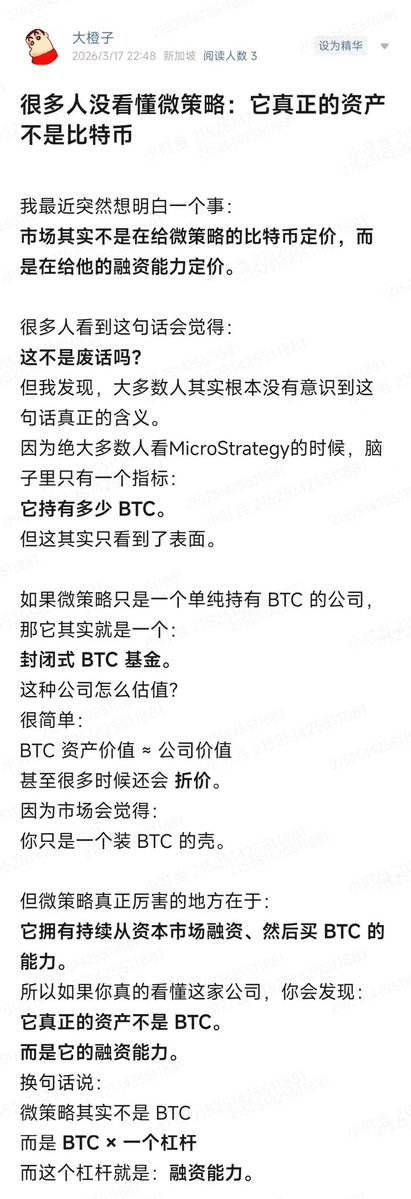 Strategy 做的事情前无古人,他正在把资本市场的融资能力变成 BTC 的价格放大器。