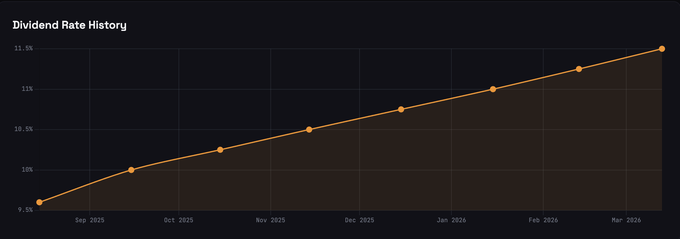 而为增加STRC的吸引力,截至目前,Strategy已进行了8次股息调整,将年化收益率从9.6%一路提升至11.5%。对比传统高收益资产,如高收益债、存款、货币基金普遍在4%至6%左右,STRC固定收益的回报更具竞争力。