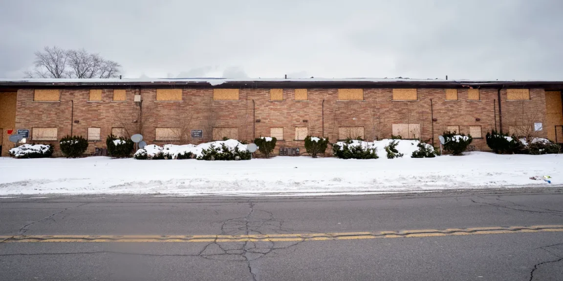自 2025 年 3 月 Cadieux 街 10410 号发生火灾以来,这栋公寓楼一直空置,烧焦的残骸被木板封住