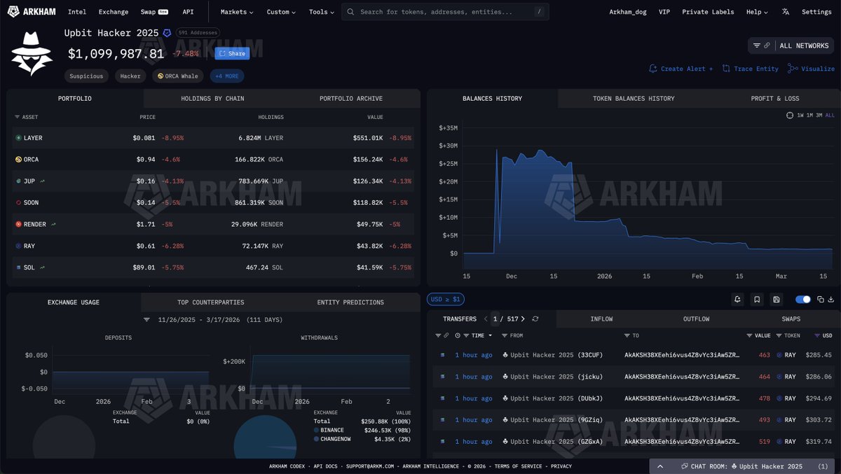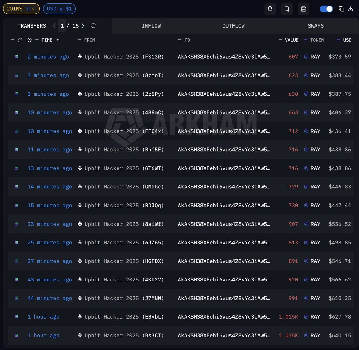 Upbit 黑客刚刚将 $16K 的 RAY 合并到一个新地址。这是他一个月以来的第一次活动。