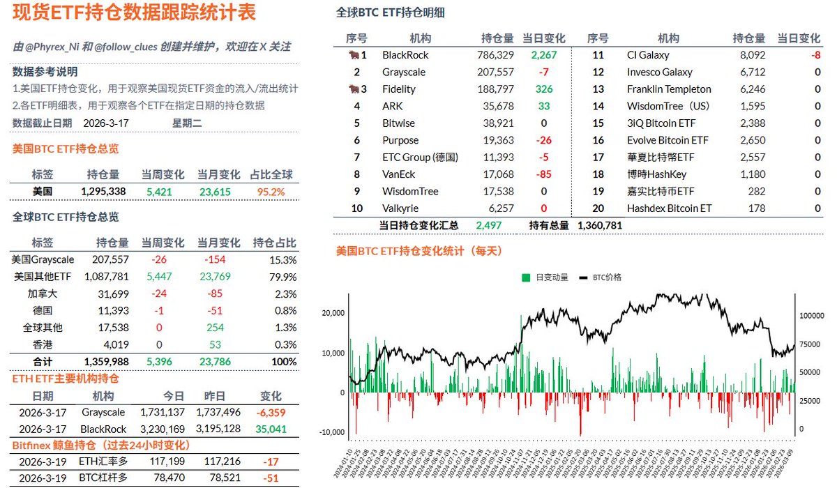 连续第七天 $BTC 现货 ETF 的净流入,同样流入量并不算很高,仍然只有 2,000 余枚,仍然是贝莱德占为主导,其它机构的买卖量可以忽略不记,这也能说明投资者抛售的情绪在降低,还有小部分的投资者对于 Bitcoin 是低位有一定的共识,希望在这个时间抄底,最起码是博弈战争结束的反弹。