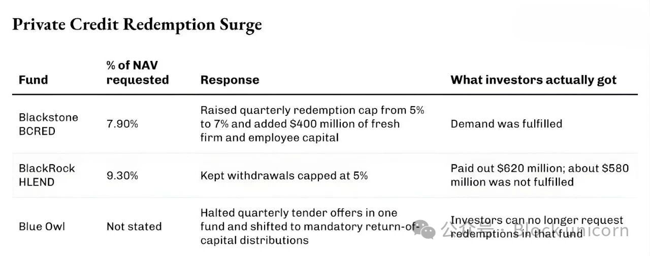 这导致顶级私人信贷基金经理不得不采取酌情修改规则或限制赎回的方式。